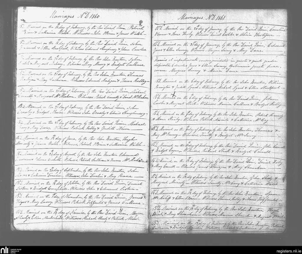 Glin; County of Limerick; Diocese of Limerick. Marriages, Feb. 1860 to Feb. 1861