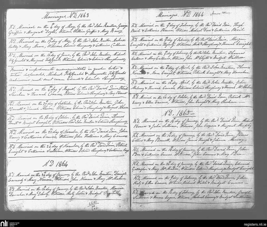 Glin; County of Limerick; Diocese of Limerick. Marriages, May 1863 to Feb. 1865