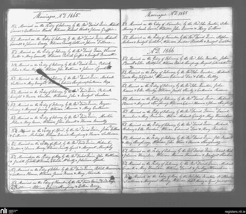 Glin; County of Limerick; Diocese of Limerick. Marriages, Feb. 1865 to May 1866