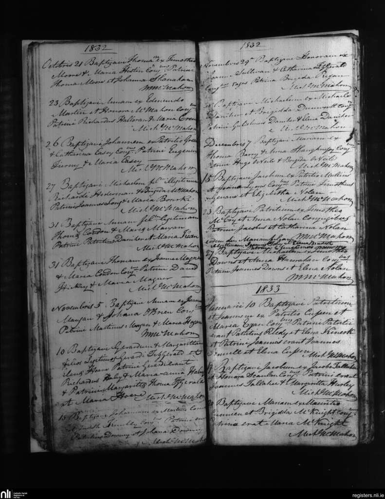 Kilcolman; County of Limerick; Diocese of Limerick. Baptisms, Oct. 1832 to Jan. 1833