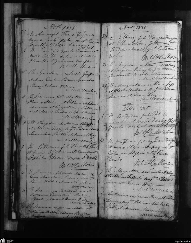 Kilcolman; County of Limerick; Diocese of Limerick. Baptisms, Nov. 1835 to Dec. 1835
