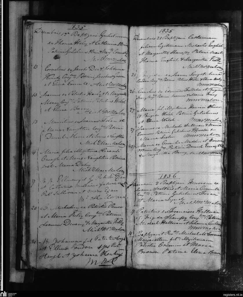 Kilcolman; County of Limerick; Diocese of Limerick. Baptisms, Dec. 1835 to Jan. 1836