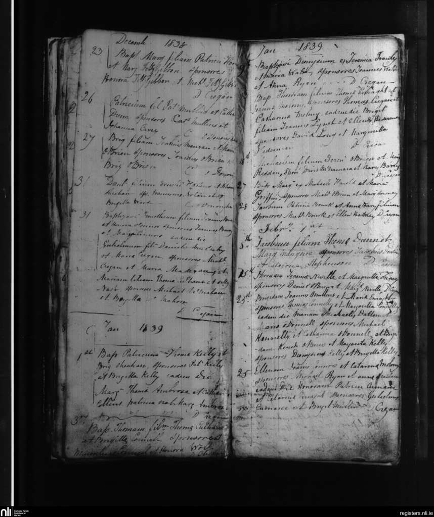 Kilcolman; County of Limerick; Diocese of Limerick. Baptisms, Dec. 1838 to Feb. 1839