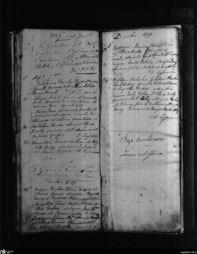 Kilcolman; County of Limerick; Diocese of Limerick. Baptisms, Aug. 1839 to Dec. 1839