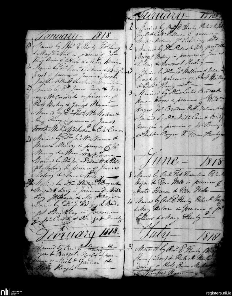 Parteen, Limerick city; County of Limerick, Clare; Diocese of Limerick. Marriages, Jan. 1818 to July 1818