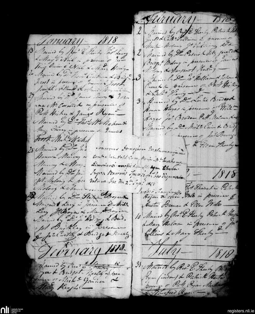 Parteen, Limerick city; County of Limerick, Clare; Diocese of Limerick. Marriages, Sep. 1815