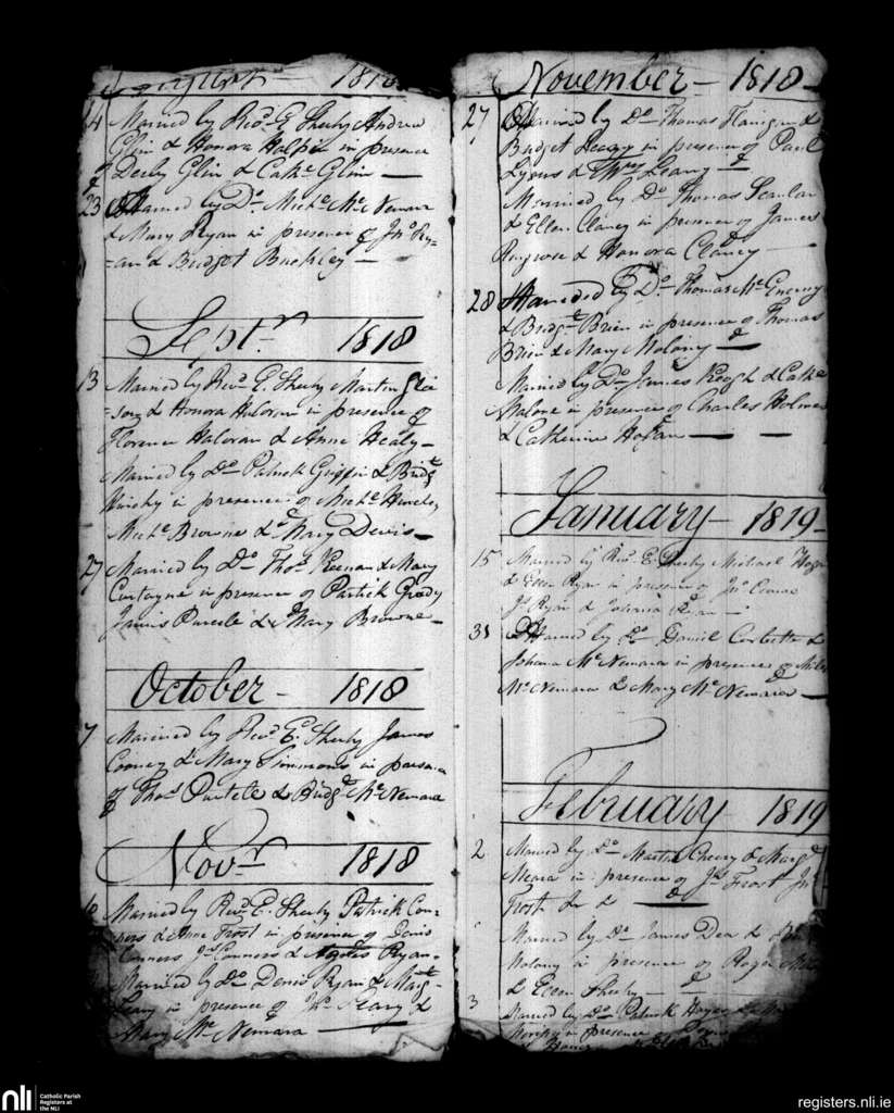 Parteen, Limerick city; County of Limerick, Clare; Diocese of Limerick. Marriages, Aug. 1818 to Feb. 1819