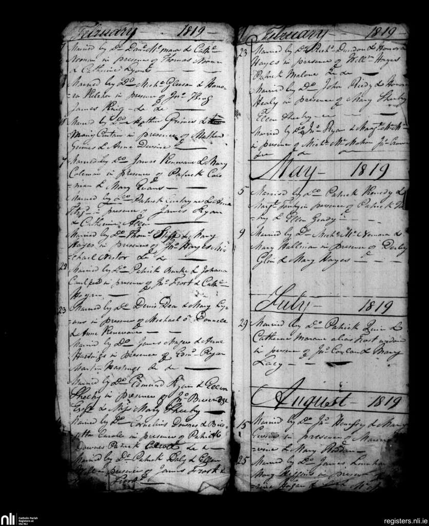 Parteen, Limerick city; County of Limerick, Clare; Diocese of Limerick. Marriages, Feb. 1819 to Aug. 1819