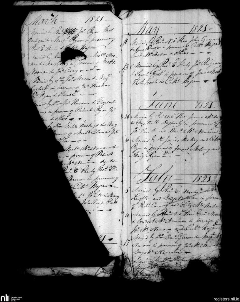 Parteen, Limerick city; County of Limerick, Clare; Diocese of Limerick. Marriages, Mar. 1821 to July 1821
