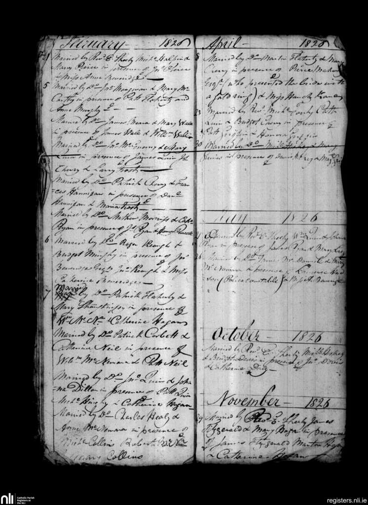 Parteen, Limerick city; County of Limerick, Clare; Diocese of Limerick. Marriages, Feb. 1826 to Nov. 1826