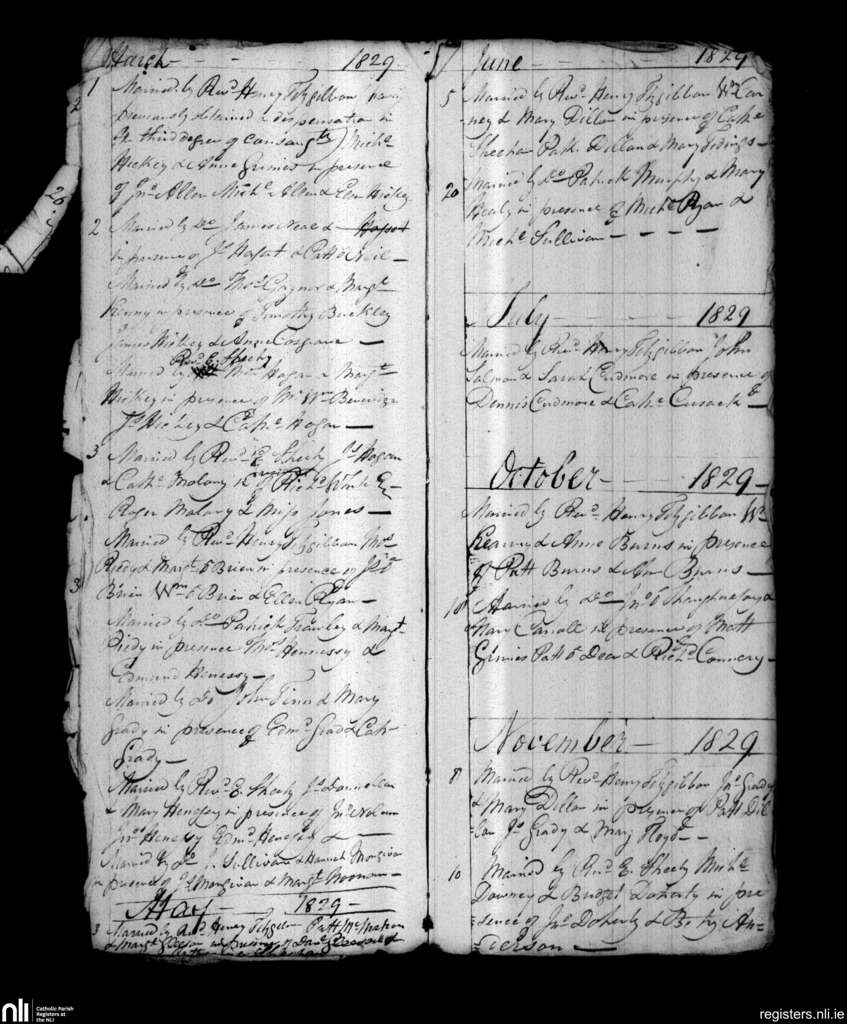 Parteen, Limerick city; County of Limerick, Clare; Diocese of Limerick. Marriages, Mar. 1829 to Nov. 1829