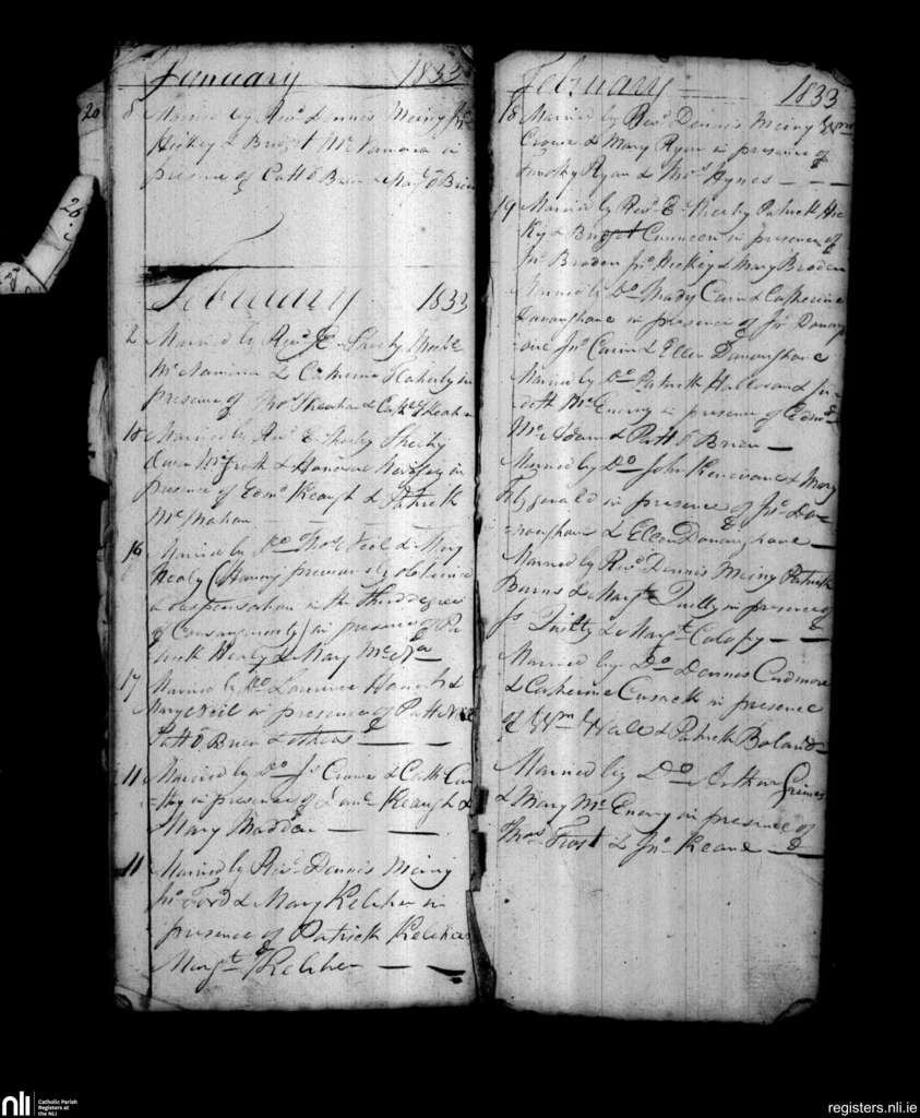 Parteen, Limerick city; County of Limerick, Clare; Diocese of Limerick. Marriages, Jan. 1833 to Feb. 1833