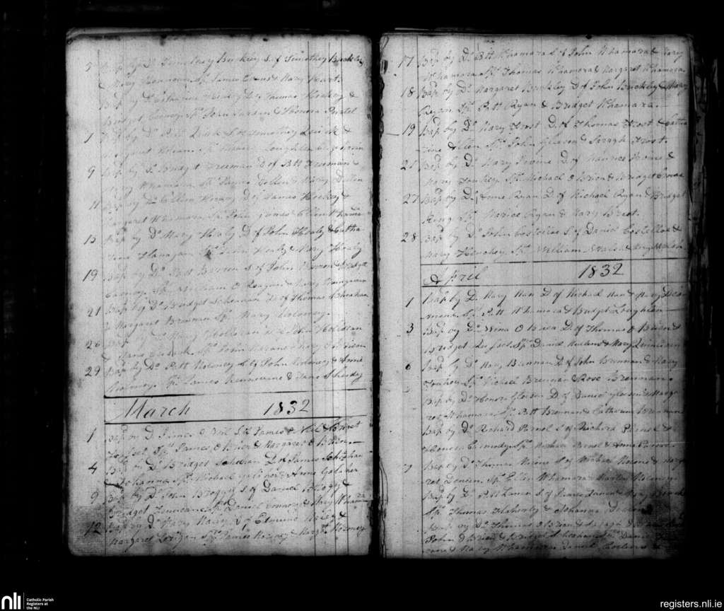 Parteen, Limerick city; County of Clare, Limerick; Diocese of Limerick. Baptisms, Feb. 1832 to Apr. 1832