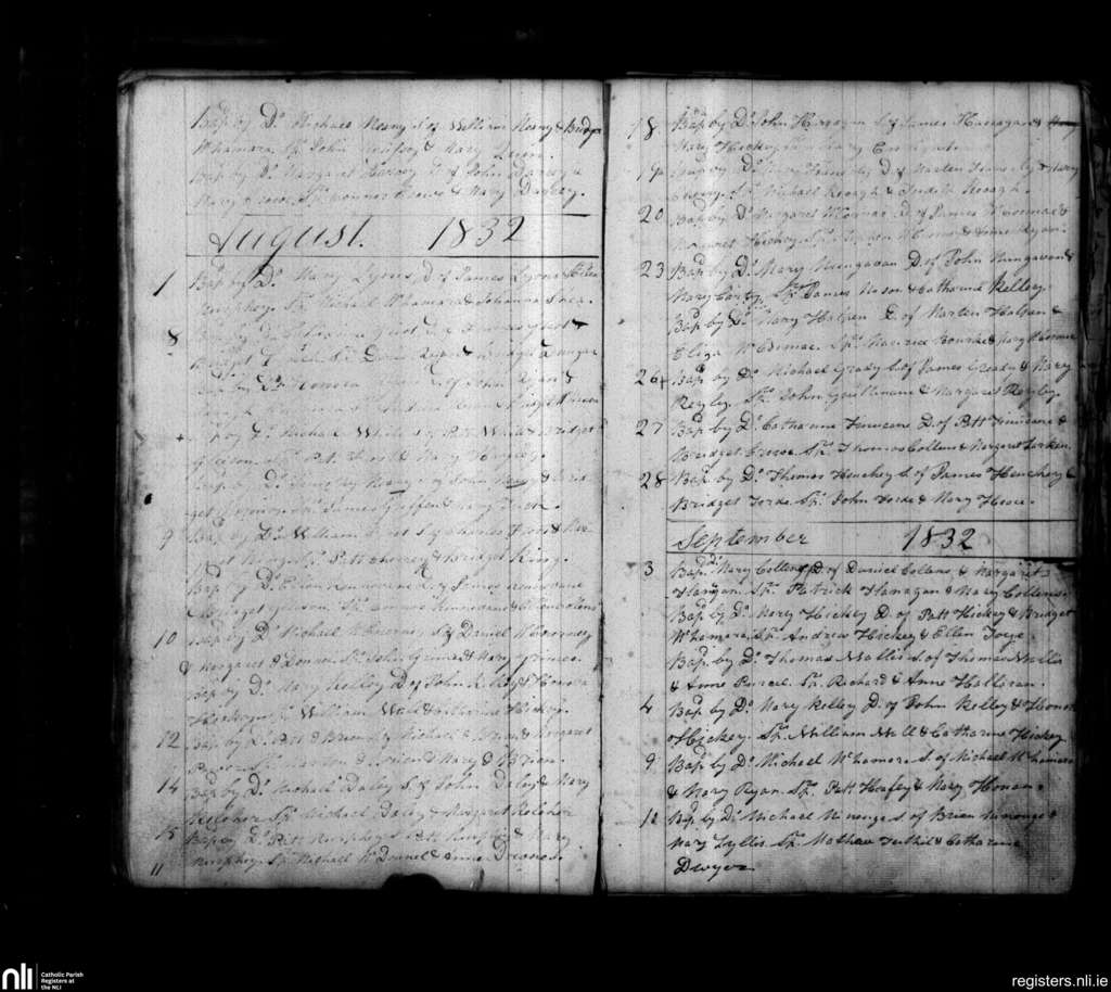 Parteen, Limerick city; County of Clare, Limerick; Diocese of Limerick. Baptisms, July 1832 to Sep. 1832