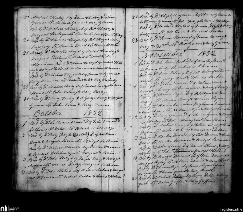 Parteen, Limerick city; County of Clare, Limerick; Diocese of Limerick. Baptisms, Sep. 1832 to Nov. 1832