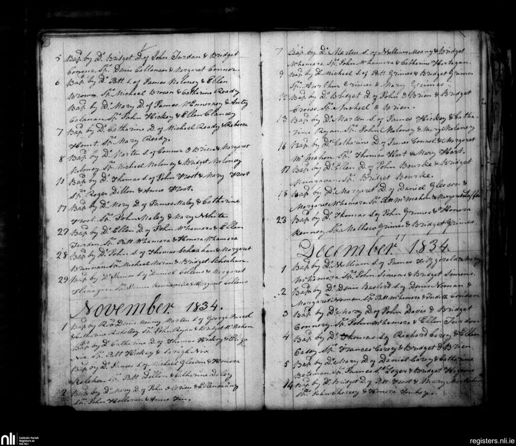 Parteen, Limerick city; County of Clare, Limerick; Diocese of Limerick. Baptisms, Oct. 1834 to Dec. 1834