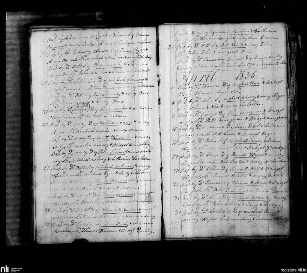Parteen, Limerick city; County of Clare, Limerick; Diocese of Limerick. Baptisms, Mar. 1836 to Apr. 1836