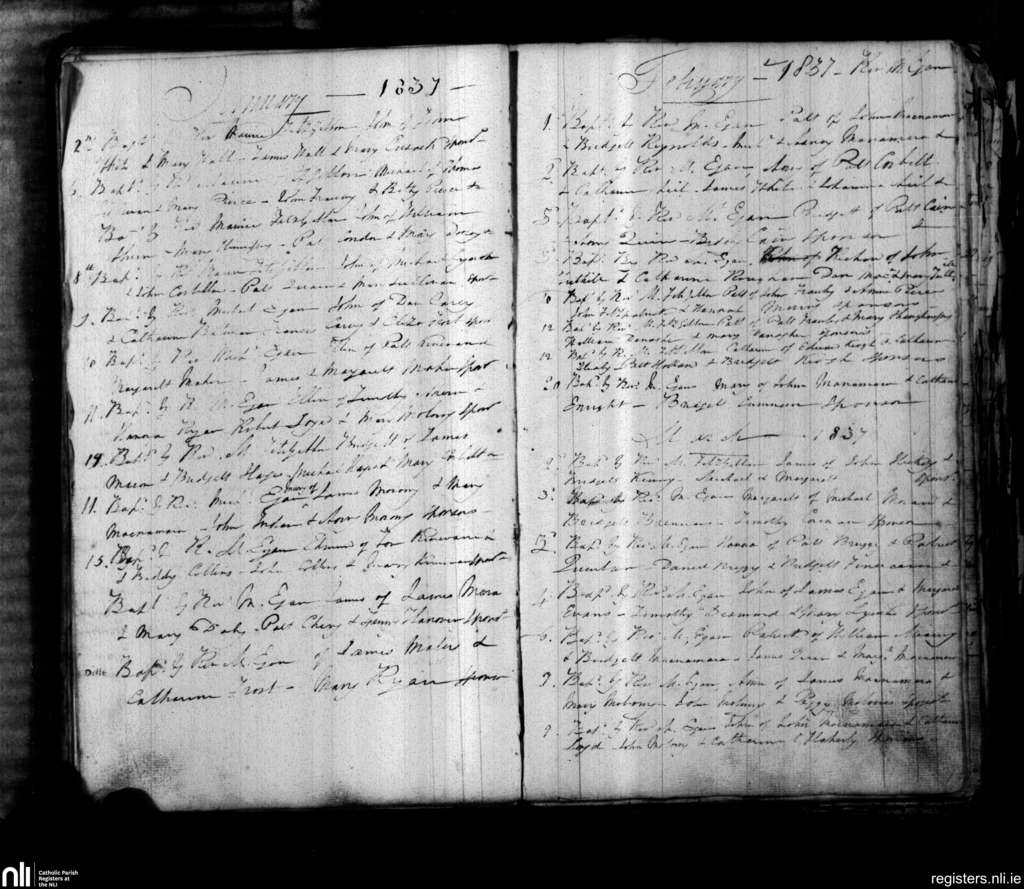 Parteen, Limerick city; County of Clare, Limerick; Diocese of Limerick. Baptisms, Jan. 1837 to Mar. 1837
