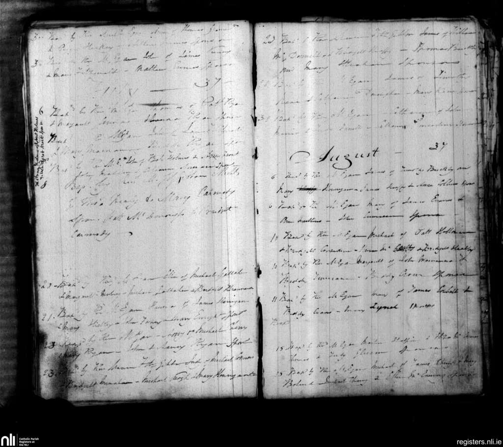 Parteen, Limerick city; County of Clare, Limerick; Diocese of Limerick. Baptisms, June 1837 to Aug. 1837