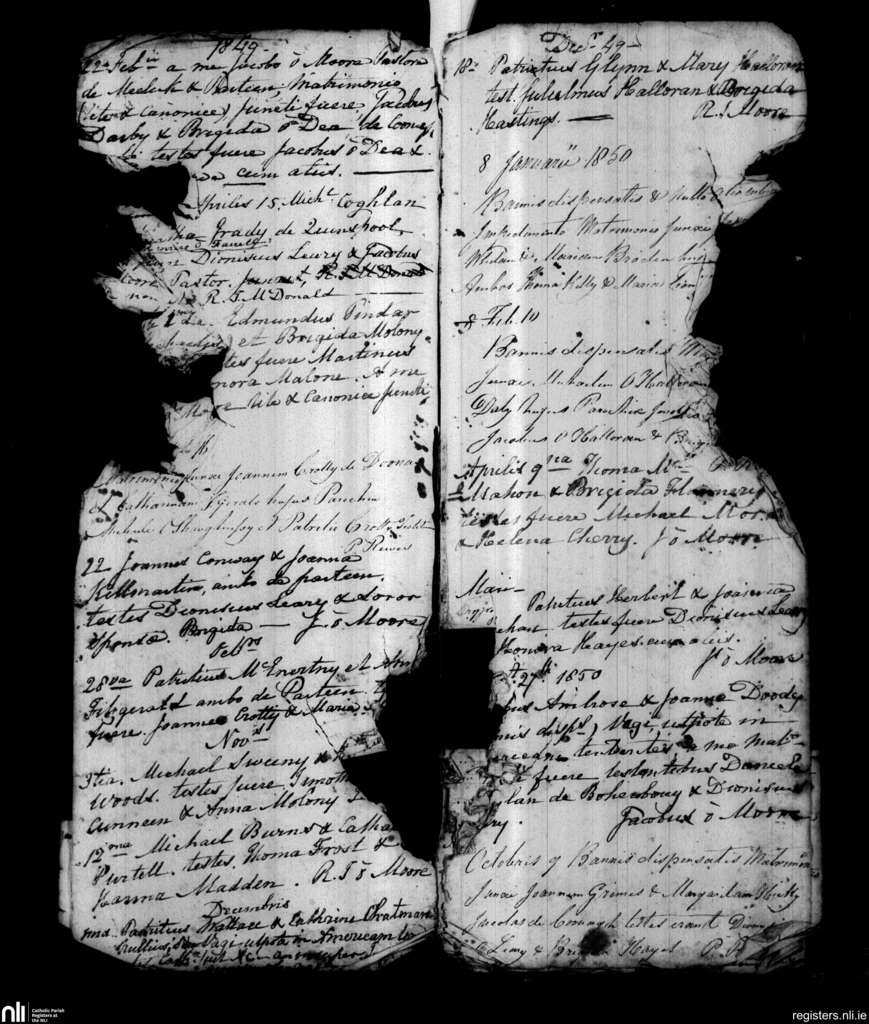 Parteen, Limerick city; County of Clare, Limerick; Diocese of Limerick. Marriages, Feb. 1849 to Oct. 1850