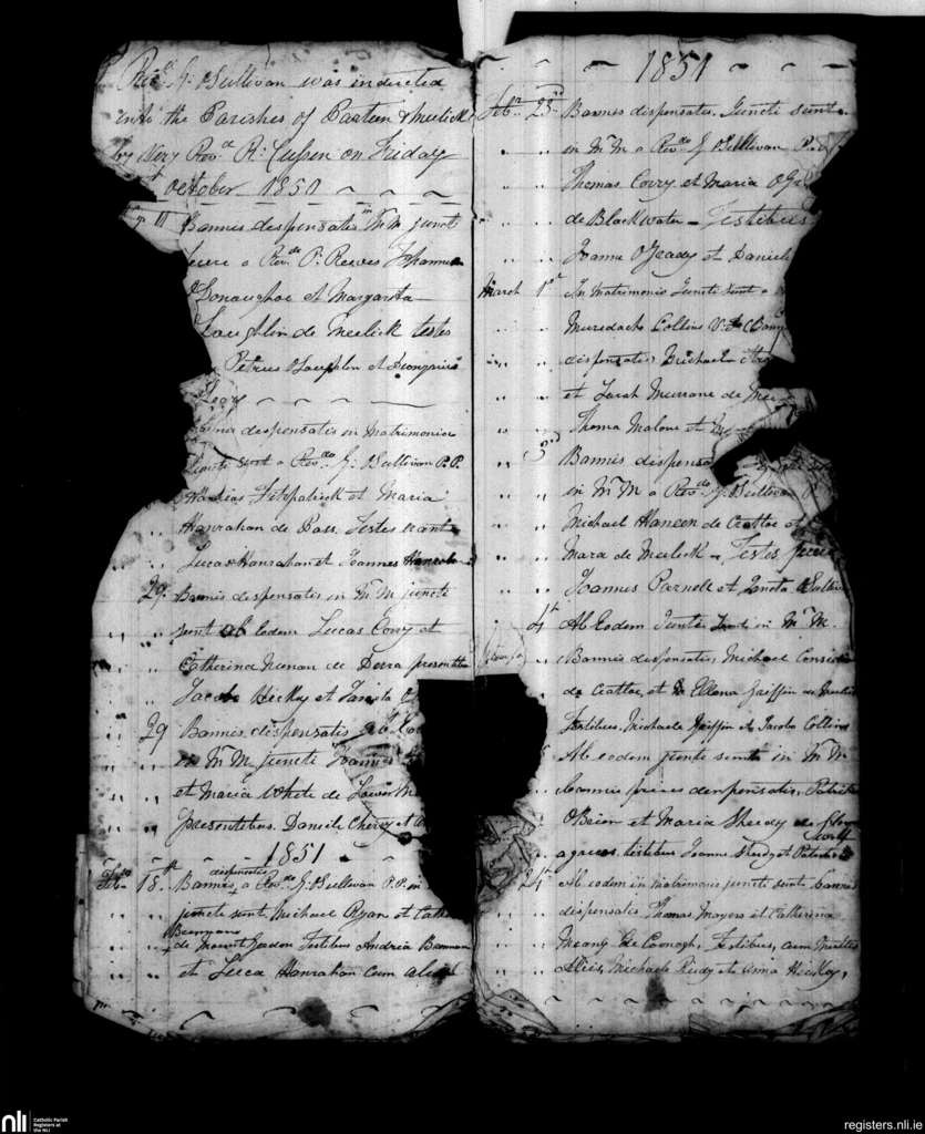 Parteen, Limerick city; County of Clare, Limerick; Diocese of Limerick. Marriages, Oct. 1850 to Mar. 1851