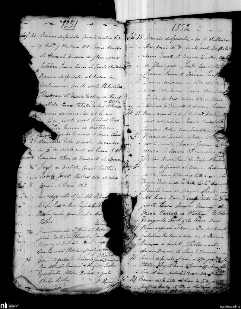 Parteen, Limerick city; County of Clare, Limerick; Diocese of Limerick. Marriages, Aug. 1851 to May 1852