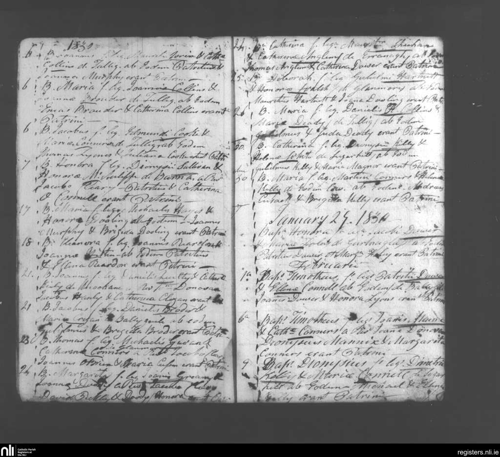Monagea; County of Limerick; Diocese of Limerick. Baptisms, Jan. 1830 to Feb. 1830