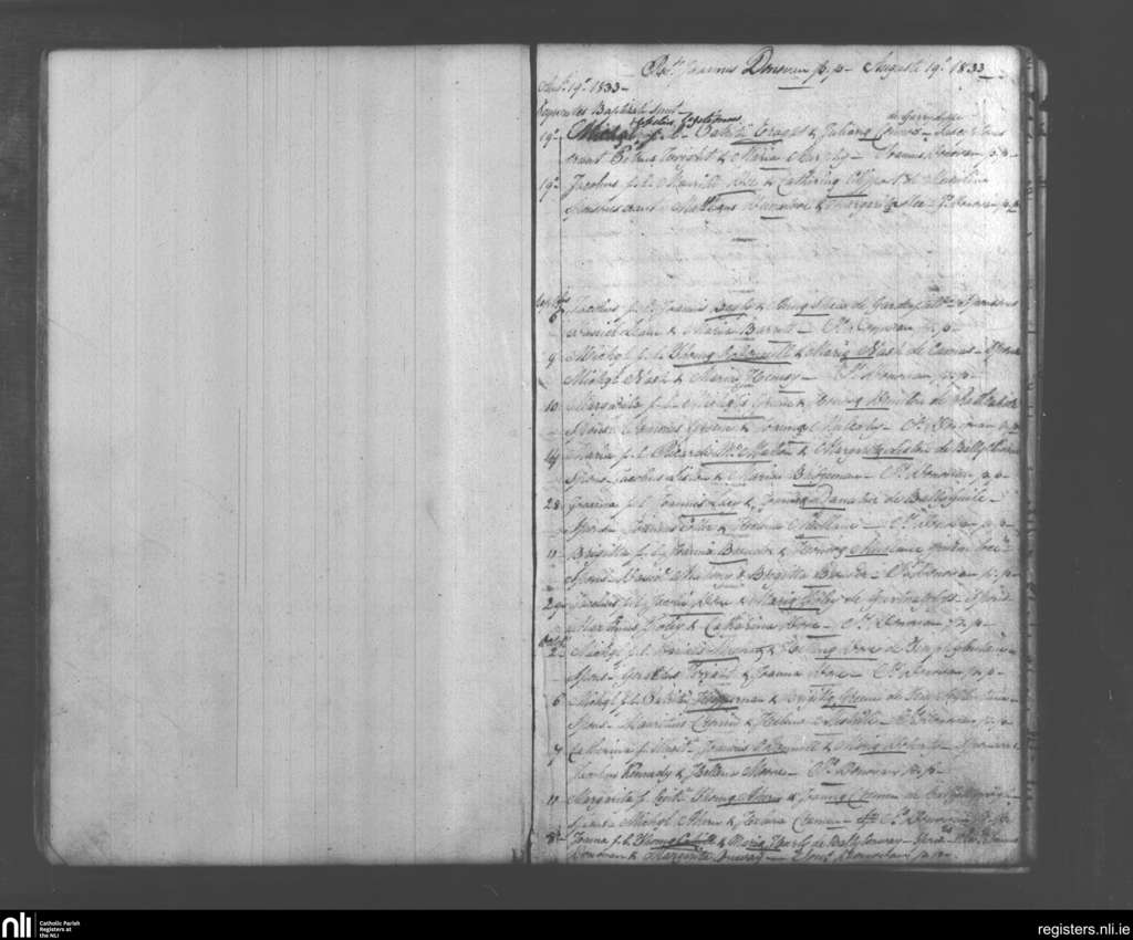 Monagea; County of Limerick; Diocese of Limerick. Baptisms, Aug. 1833 to Oct. 1833