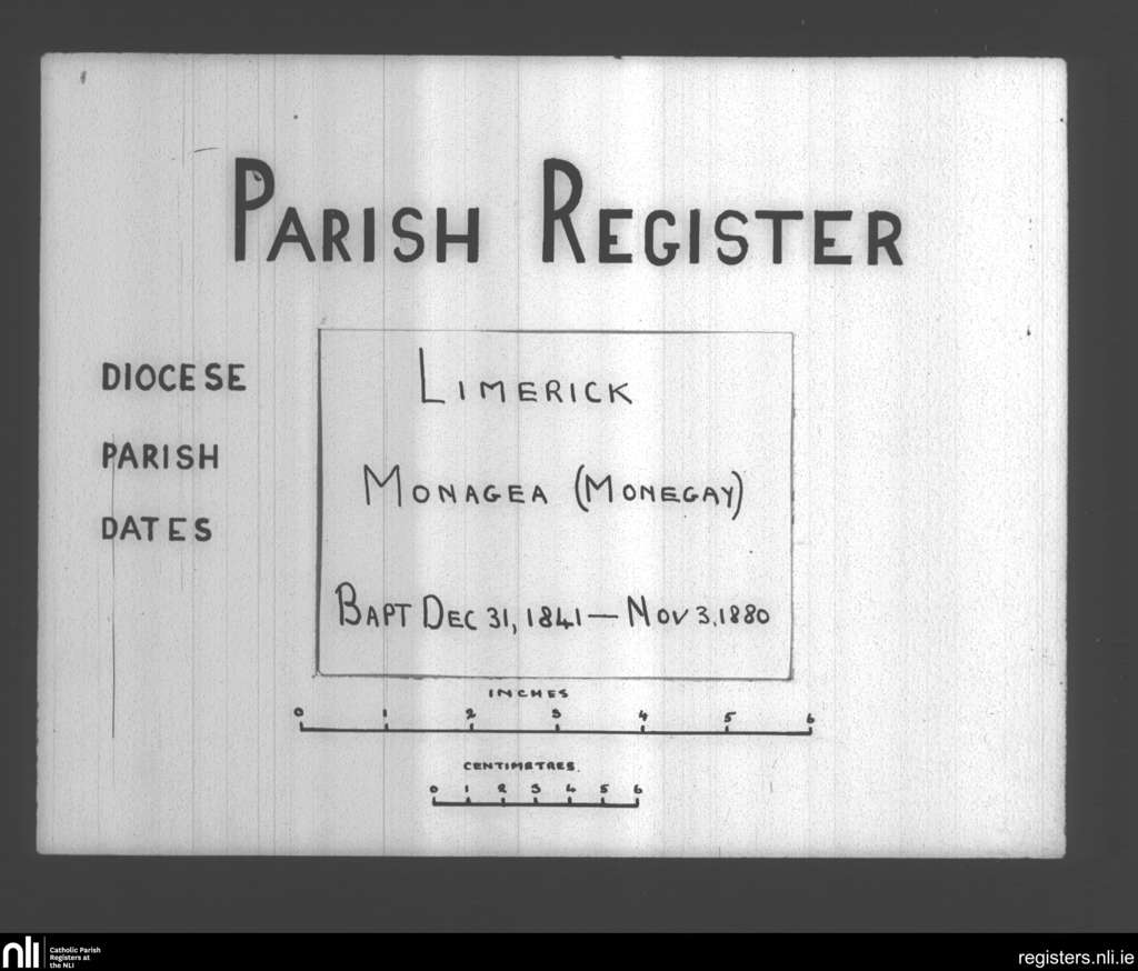 Monagea; County of Limerick; Diocese of Limerick. Baptisms