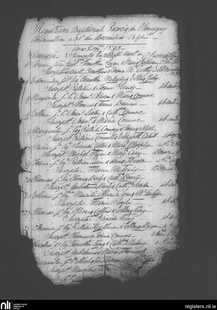 Monagea; County of Limerick; Diocese of Limerick. Baptisms, Dec. 1841 to Jan. 1842