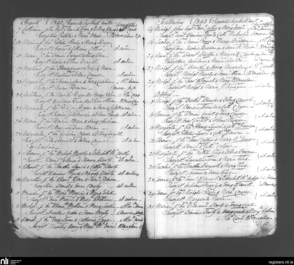 Monagea; County of Limerick; Diocese of Limerick. Baptisms, Aug. 1842 to Oct. 1842