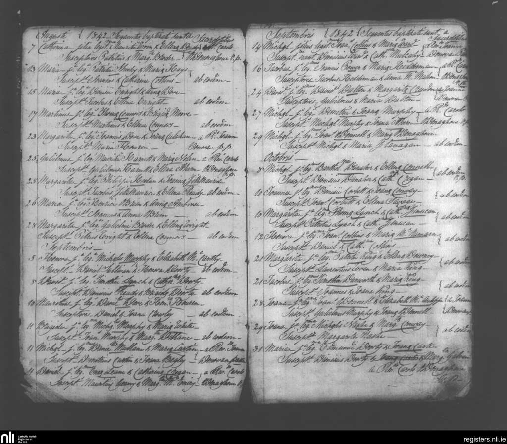 Monagea; County of Limerick; Diocese of Limerick. Baptisms, Aug. 1842 to Oct. 1842