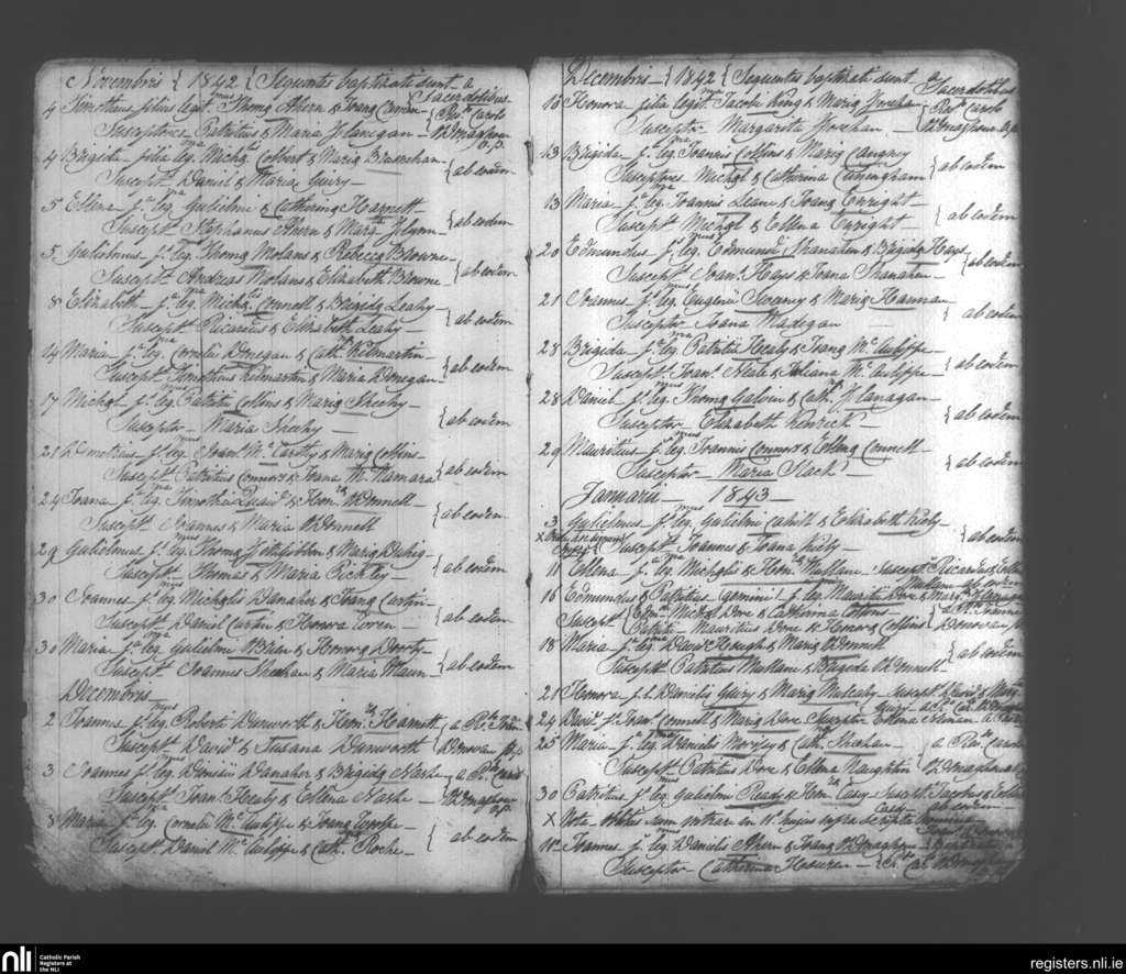 Monagea; County of Limerick; Diocese of Limerick. Baptisms, Nov. 1842 to Jan. 1843