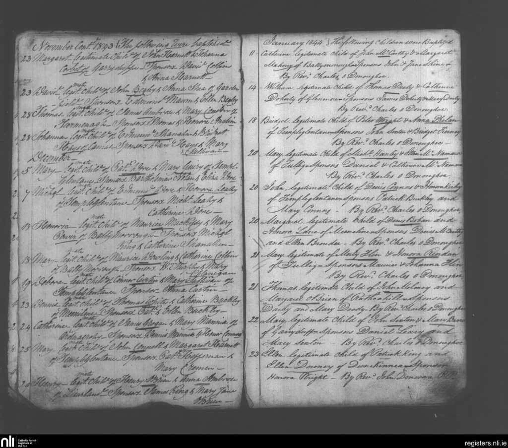 Monagea; County of Limerick; Diocese of Limerick. Baptisms, Nov. 1843 to Jan. 1844