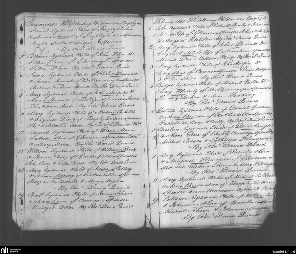 Monagea; County of Limerick; Diocese of Limerick. Baptisms, Jan. 1845 to Feb. 1845