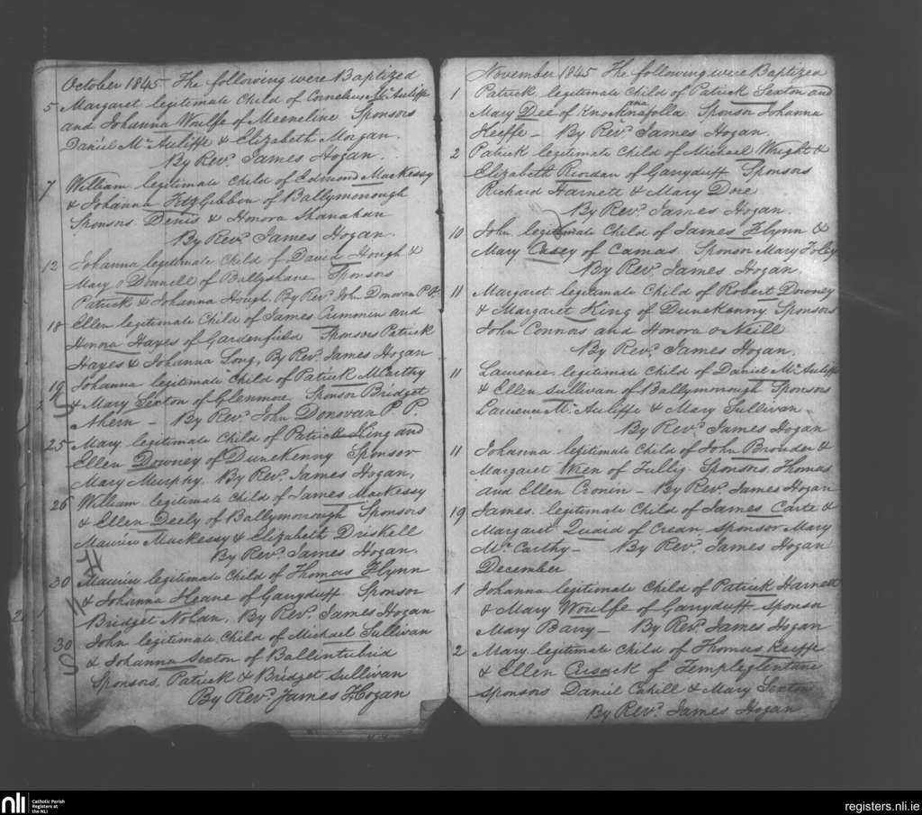 Monagea; County of Limerick; Diocese of Limerick. Baptisms, Oct. 1845 to Dec. 1845