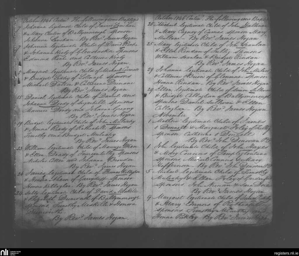 Monagea; County of Limerick; Diocese of Limerick. Baptisms, Oct. 1846 to Nov. 1846