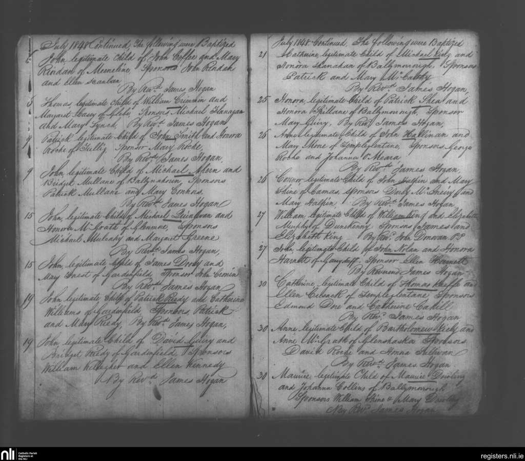 Monagea; County of Limerick; Diocese of Limerick. Baptisms, July 1848