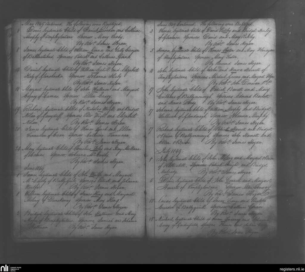 Monagea; County of Limerick; Diocese of Limerick. Baptisms, May 1849 to July 1849