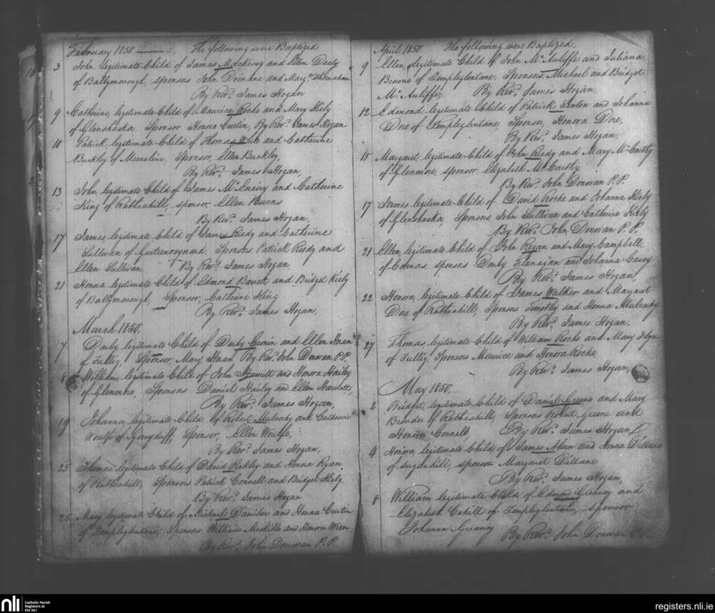 Monagea; County of Limerick; Diocese of Limerick. Baptisms, Feb. 1850 to May 1850