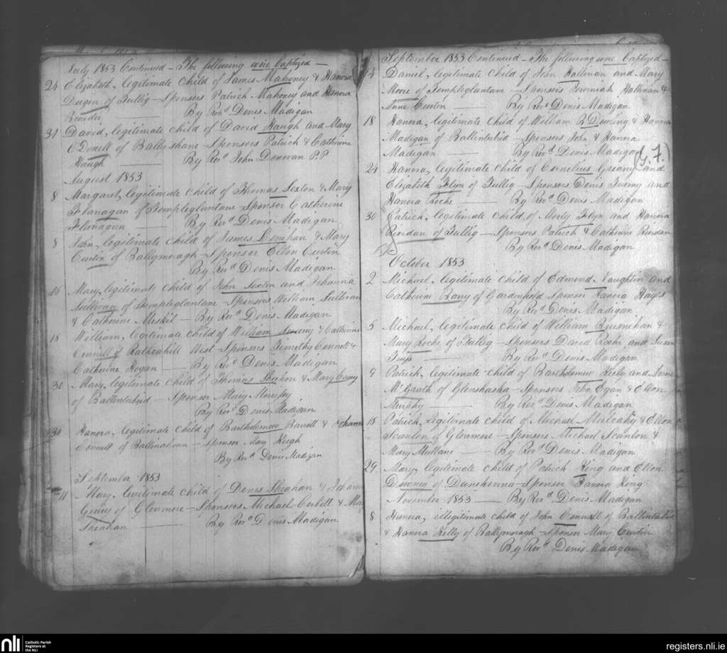 Monagea; County of Limerick; Diocese of Limerick. Baptisms, July 1853 to Nov. 1853