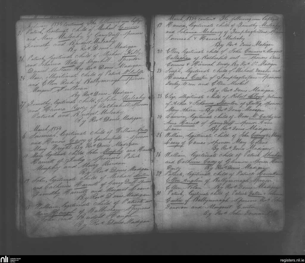 Monagea; County of Limerick; Diocese of Limerick. Baptisms, Feb. 1854 to Mar. 1854