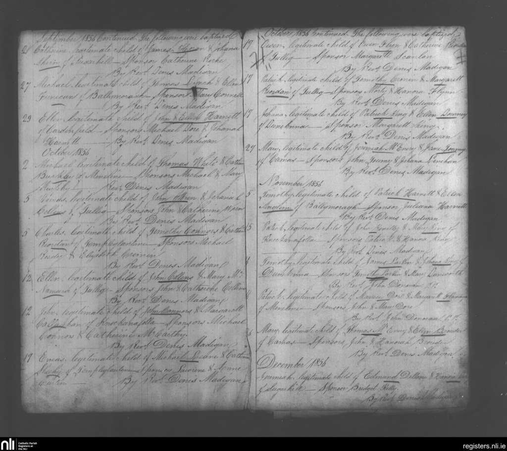 Monagea; County of Limerick; Diocese of Limerick. Baptisms, Sep. 1856 to Dec. 1856