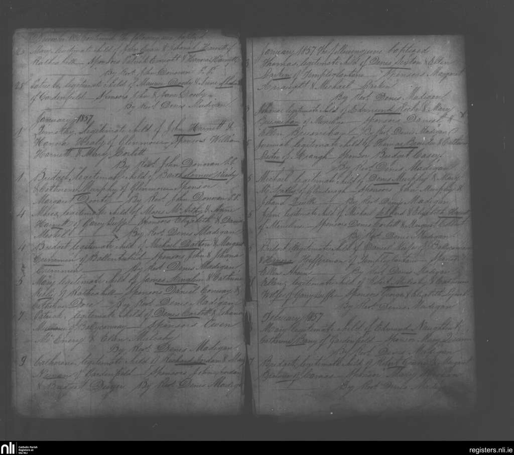 Monagea; County of Limerick; Diocese of Limerick. Baptisms, Dec. 1856 to Feb. 1857