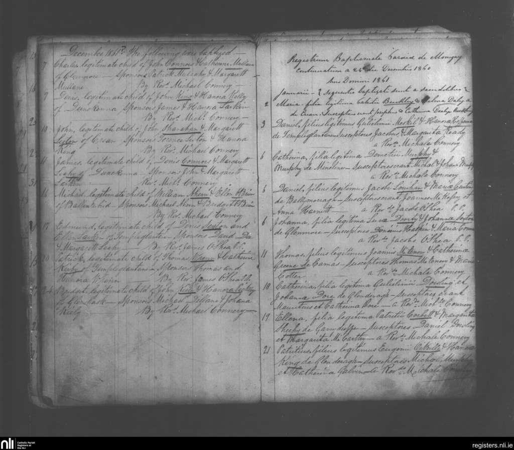 Monagea; County of Limerick; Diocese of Limerick. Baptisms, Dec. 1860 to Jan. 1861