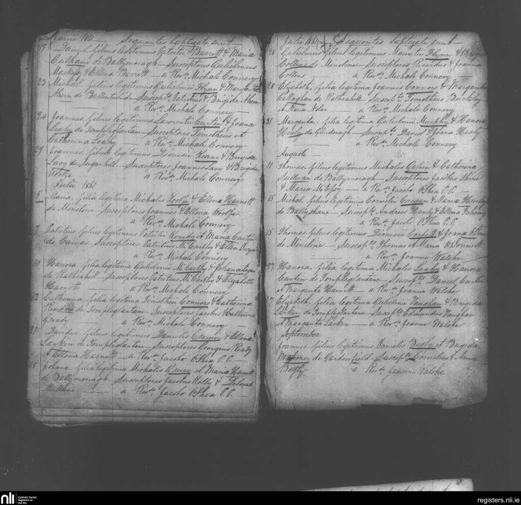 Monagea; County of Limerick; Diocese of Limerick. Baptisms, June 1861 to Sep. 1861