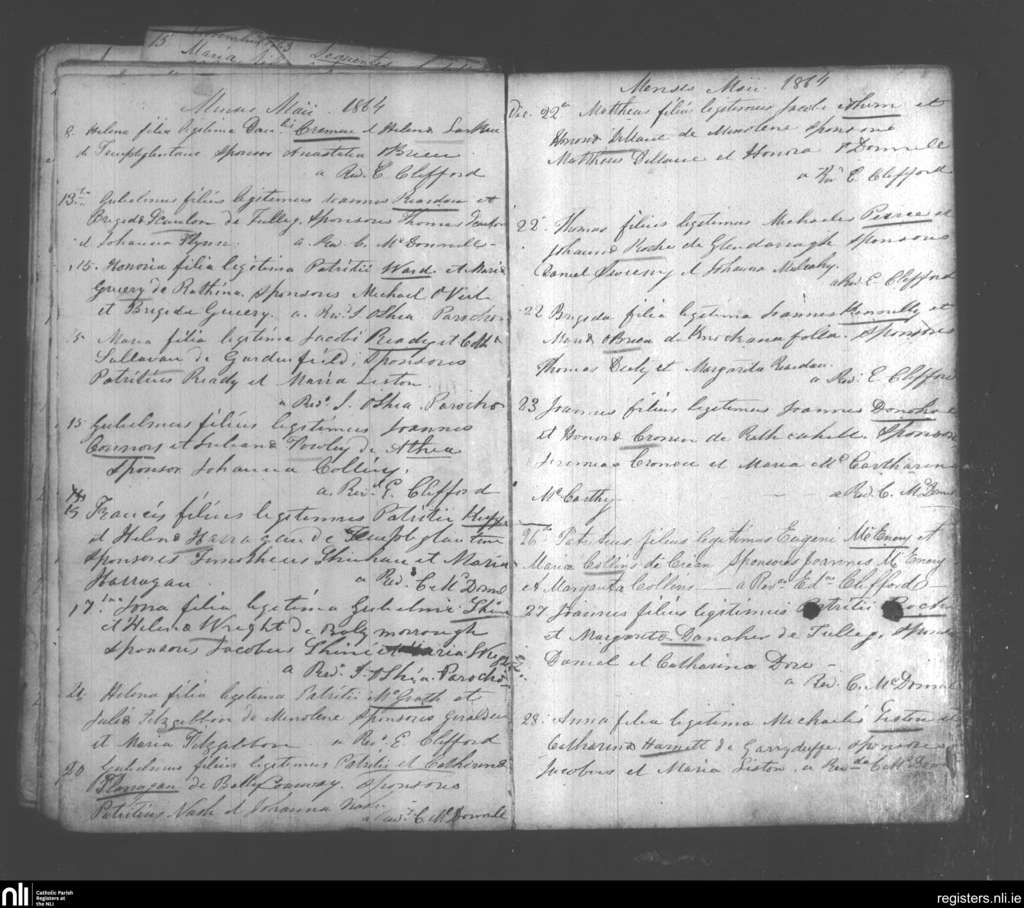Monagea; County of Limerick; Diocese of Limerick. Baptisms, May 1864