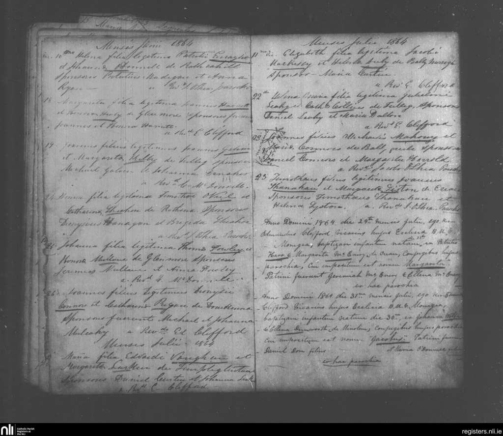 Monagea; County of Limerick; Diocese of Limerick. Baptisms, June 1864 to July 1864