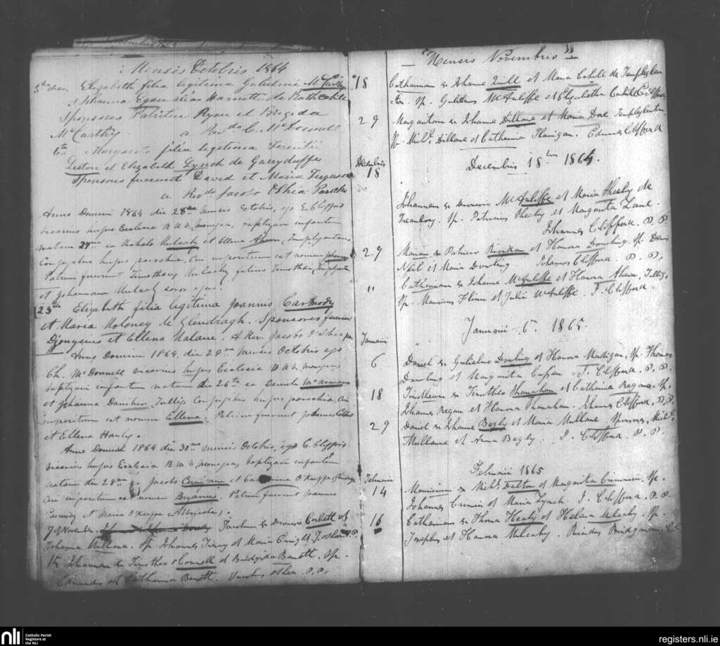Monagea; County of Limerick; Diocese of Limerick. Baptisms, Oct. 1864 to Feb. 1865