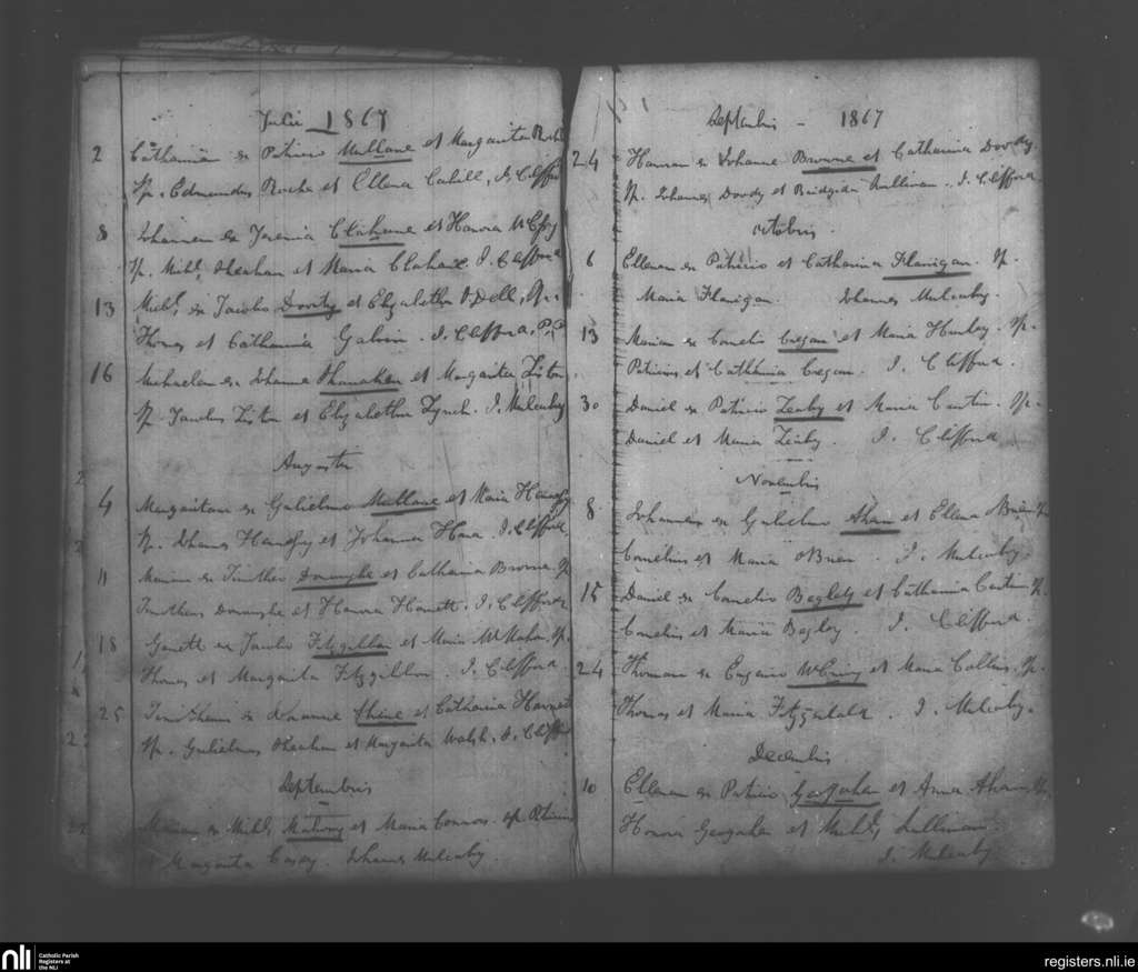 Monagea; County of Limerick; Diocese of Limerick. Baptisms, July 1867 to Dec. 1867